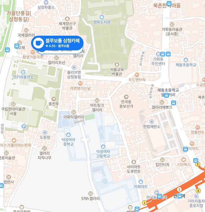 안국역을 1번출구길로 쭉 올라와 정독도서관이 보이면 방향을 틀면 된다.