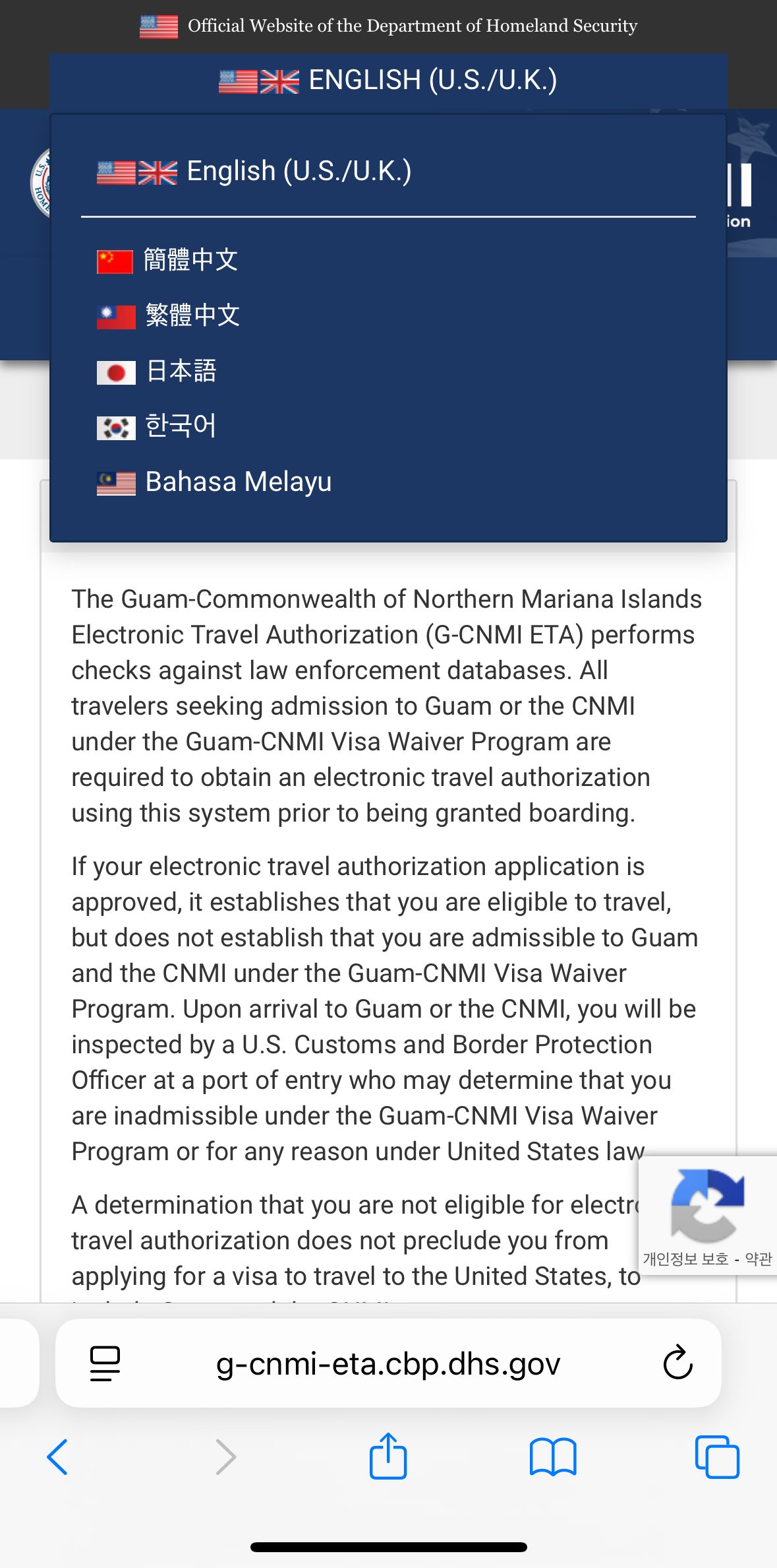 - G-CNMI ETA 신청을 위해 해당 공식 웹사이트에 접속