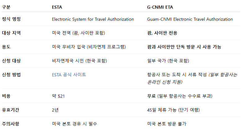 ! 괌/사이판만 간다면 : ESTA 없이 G-CNMI ETA만으로도 입국 가능
