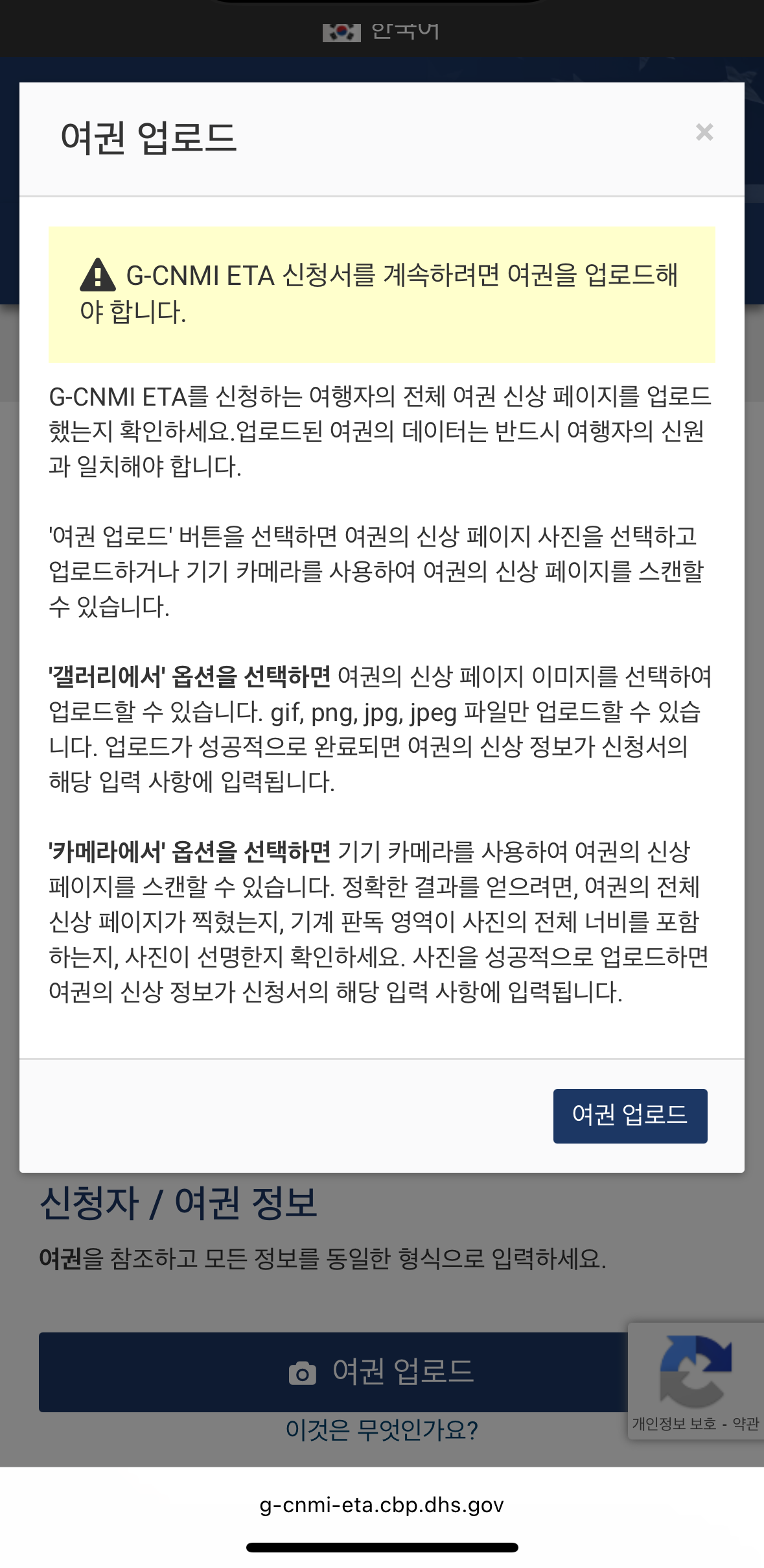 (대부분의 경우 여권이 입국일 기준으로 최소 6개월 이상의 유효 기간이 필요) - 셀카 사진 업로드도 진행하였다.