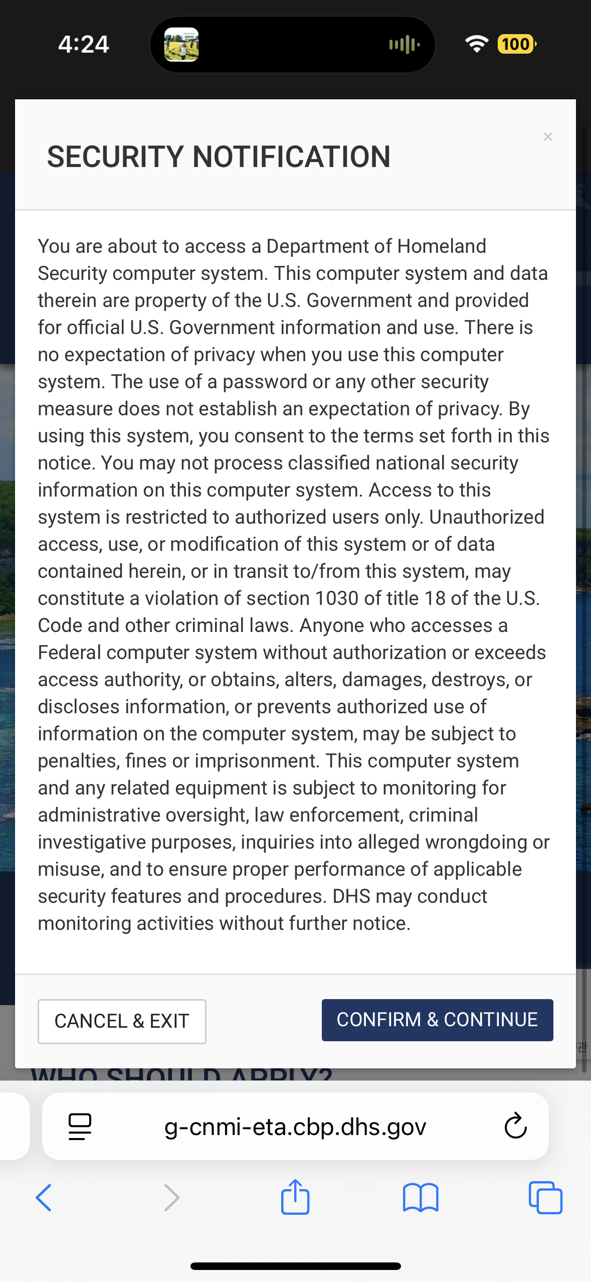 Official G-CNMI ETA Application Website, U.S. Customs and Border Protection